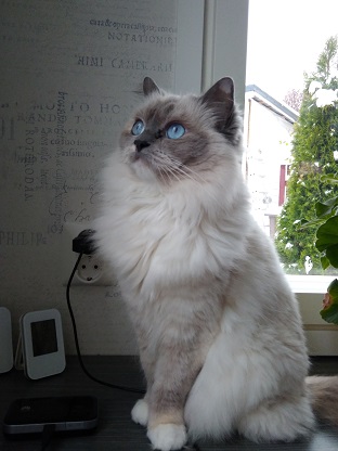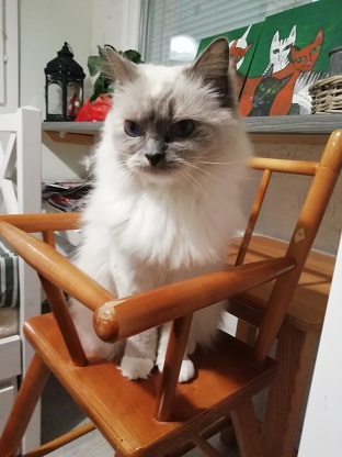 Lily-Marlee lempinimeltään Lilli. RodultaanRagdoll(räsynykke).Sinisilmäinen, naamiokuvioinen kissarotu. Rodun nimitys juontuu taipumuksesta valahtaa täysin veltoksi syliin nostettaessa. Sillä on puolipitkä untuvainen, angoratyyppinen karva. Kissa on ollut pennusta asti minulla ja on nyt 10- vuotias. Kissani on hyvin rauhallinen, lempeä, melko kiltti ja aika hiljainen. Sillä ei ole saalistusvaistoja, niinkuin maatiaskissoilla tai en ainkaan ole sitä huomannut, se vain katselee perhosia..